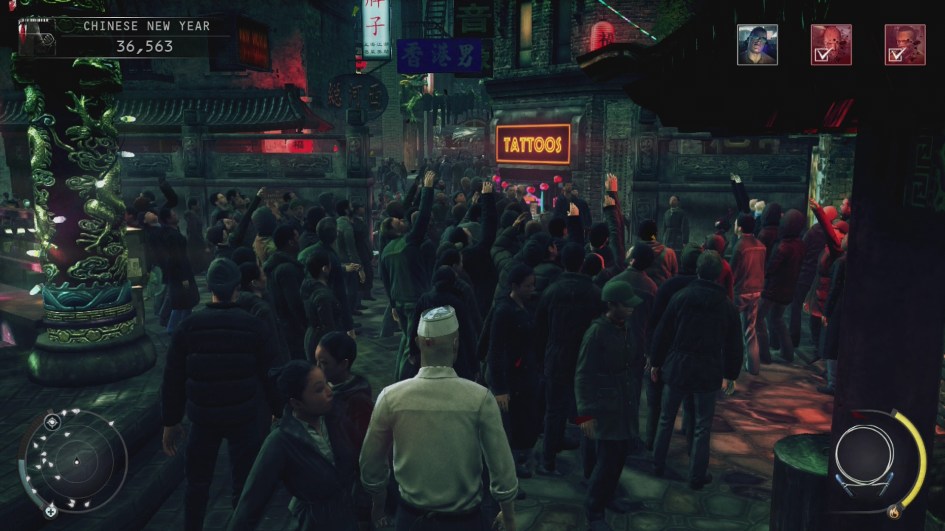 Третій елемент Інстинкту – обдурювання. Щоби вас не впізнали, коли ви маскуєтеся, ви входите в режим Інстинкту і 47-ий кашляє або прикриває обличчя рукою. З невідомих причин це збиває людей з пантелику і вони на якийсь час перестають вас підозрювати у будь-чому. Так, ось це, мабуть, чітерство. Але, знову ж таки, набереться добрий десяток локацій, де без цієї техніки вам буде дуже складно пройти рівень до кінця без винищення усього живого у радіусі півмилі.