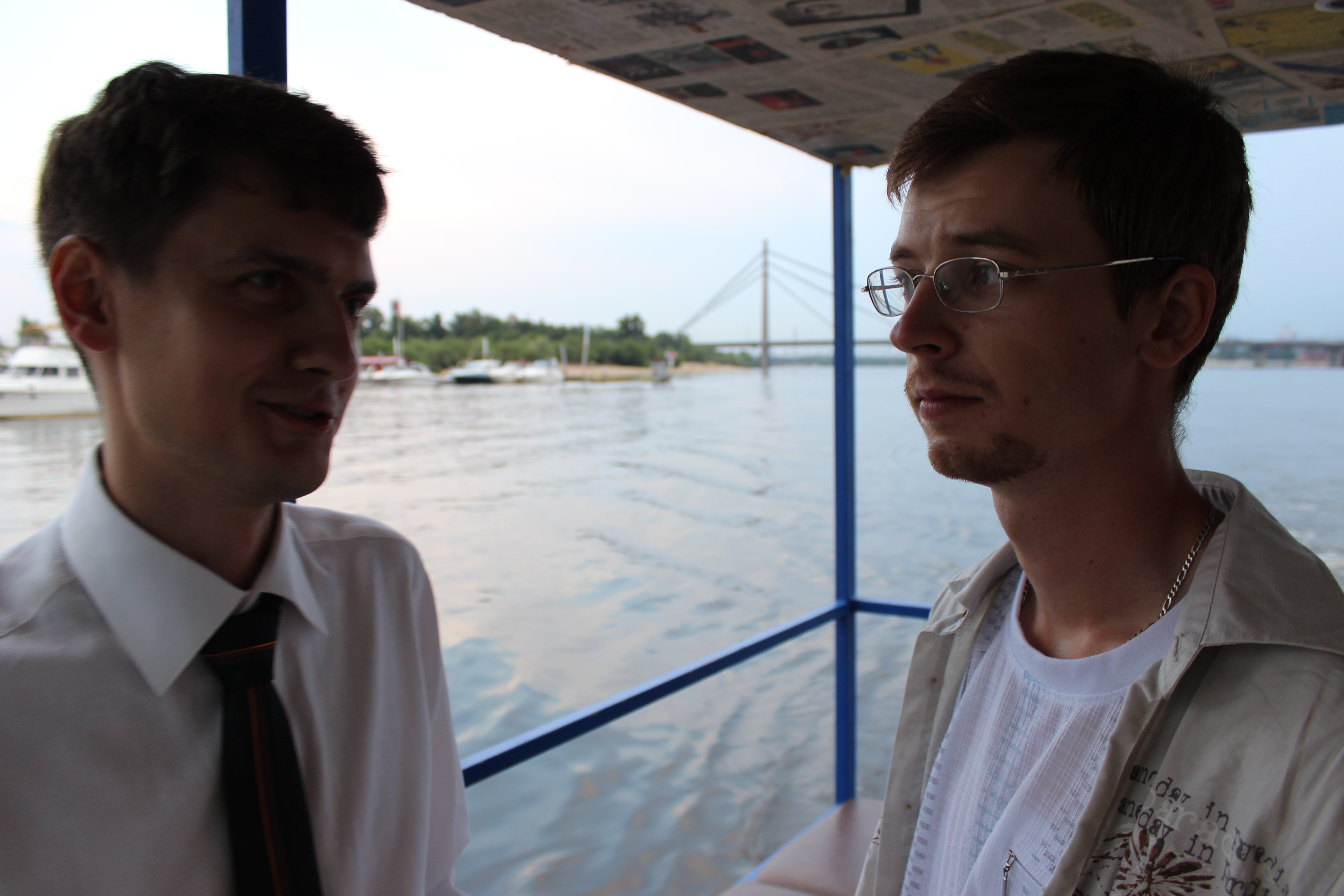 Після посиденьок у підвалі та нетривалого спільного ланчу у пабі ми відправилися кататися по Дніпру. Корабель катерок виявився меншим, ніж ми очікували, але це не завадило святкуванню.