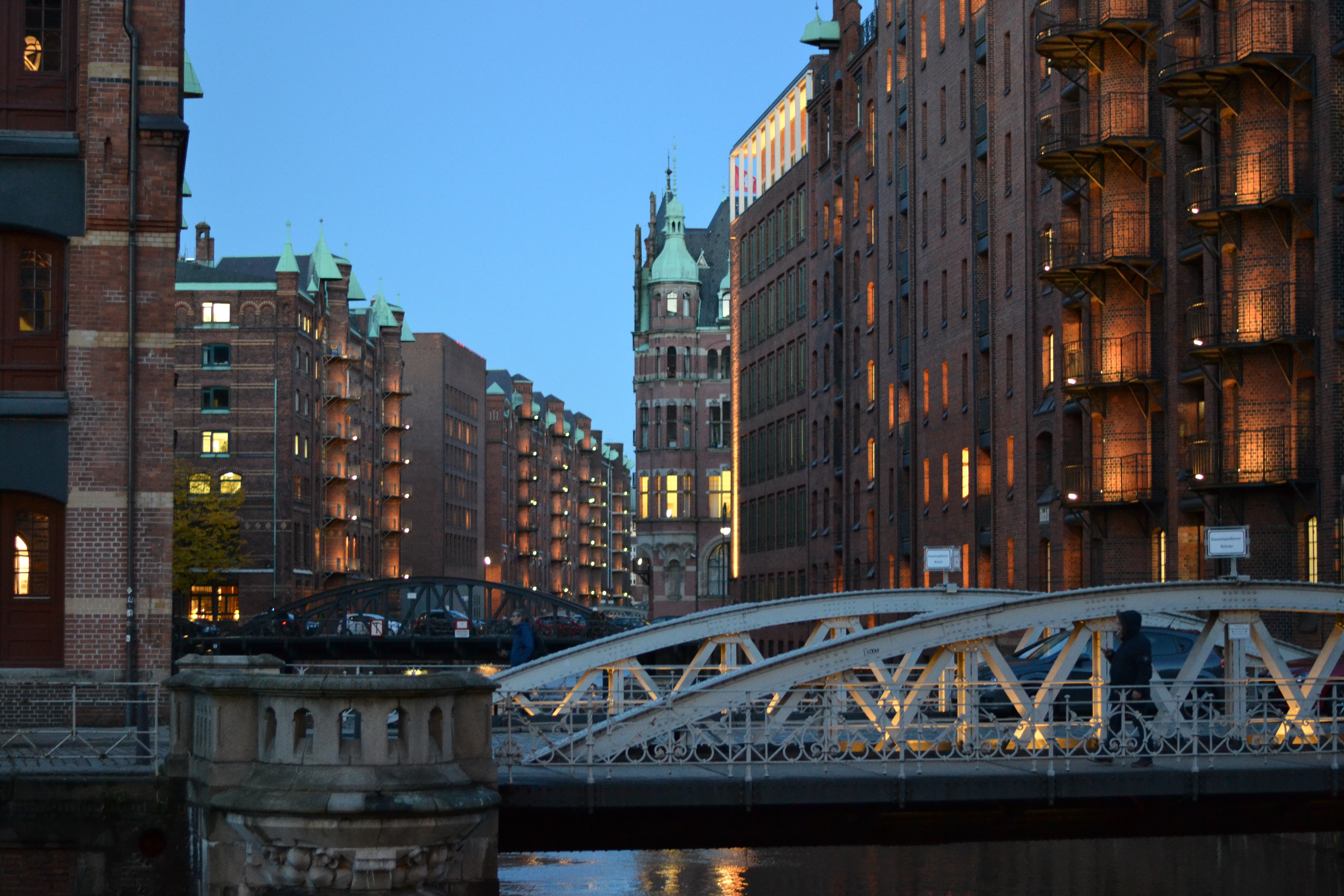 Але вражає не стільки унікальна архітектура і навіть не стільки те, що цілий район стоїть на воді, скільки факт, що всі ці віконця ввечері світяться, а за ними працюють офіси, галереї, кав’ярні та ті ж таки склади. Історична спадщина працює і далі, як сотні півтори років тому.