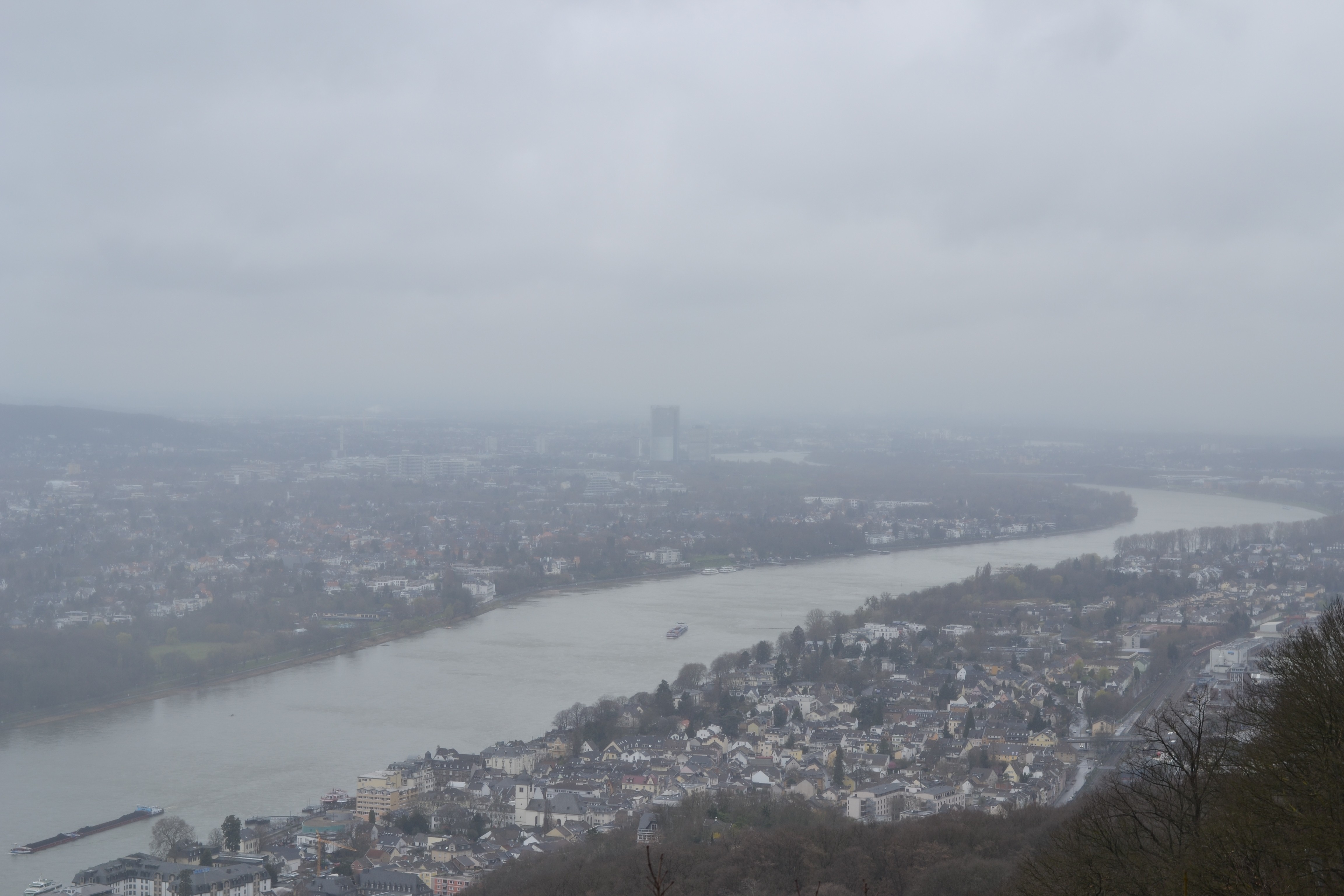 Вид на Бонн. По центру: Поштова вежа (Posttower). В хорошу погоду можна на горизонті побачити верхівки веж Кельнського собору