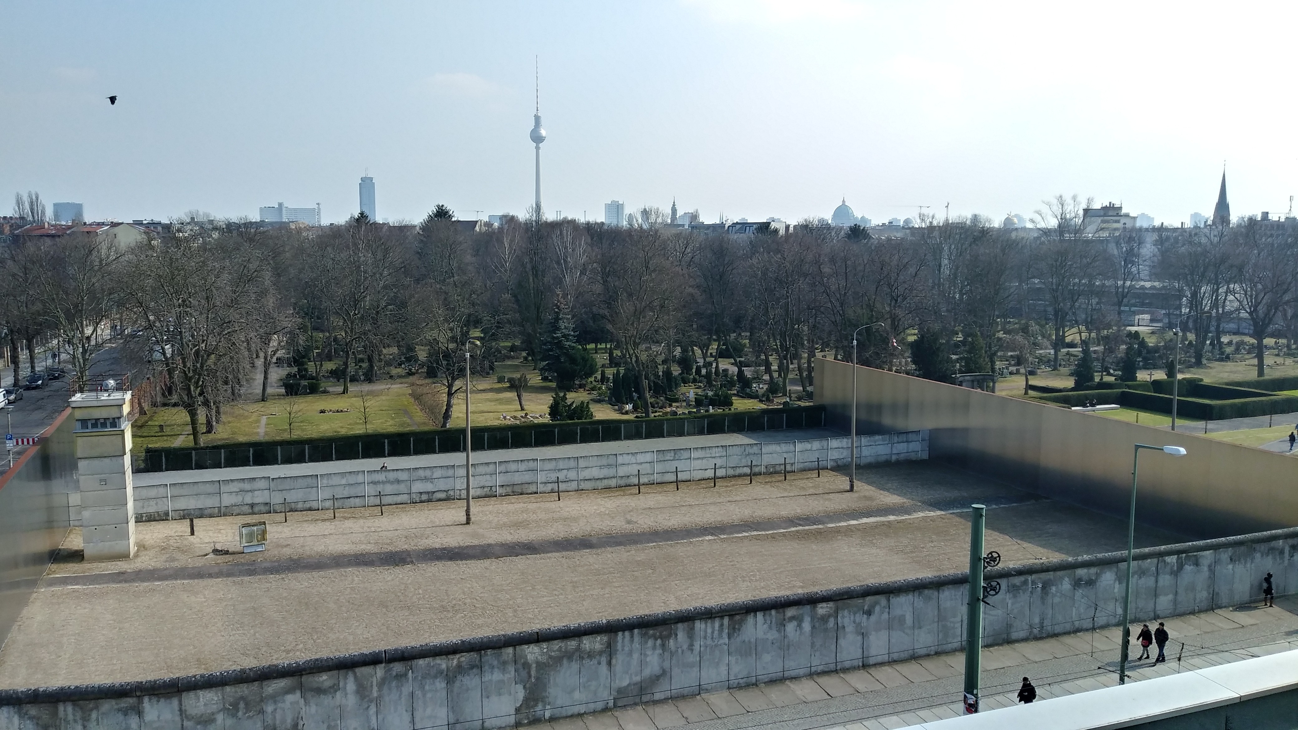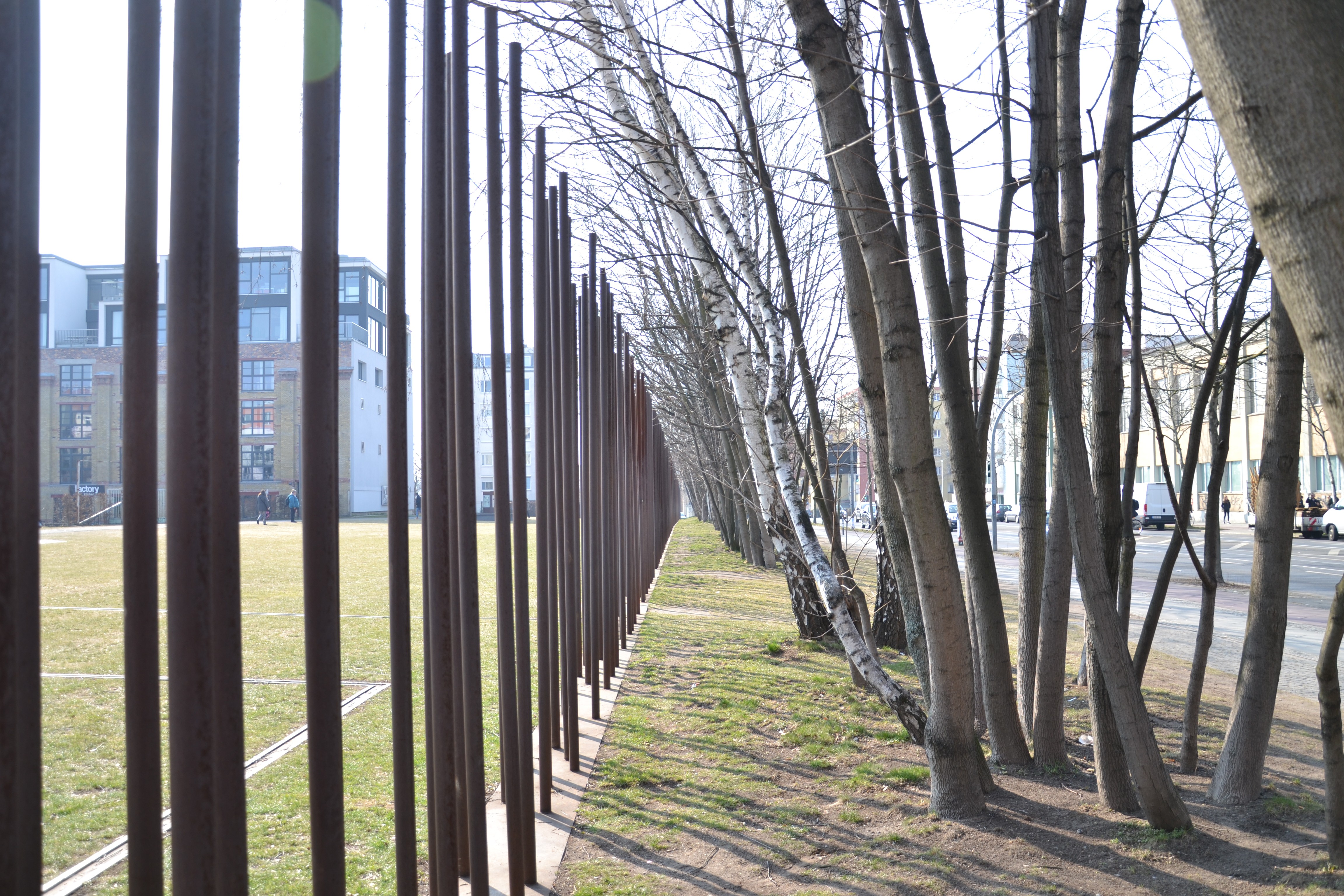 Де проходила стіна – позначено товстими іржавими прутами. Буквально на цій межі розташовано каплицю Примирення. Колись тут стояла церква, радянські солдати її використовували як оглядову вежу, але в 1985 році її таки вирішили знищити. Нині тут лише дерев’яне ретабло вівтаря, сучасне стилізоване розп’яття і пошкоджений хрест старої церкви. Тут поминають загиблих під час спроб потрапити з радянського сектору до французького.