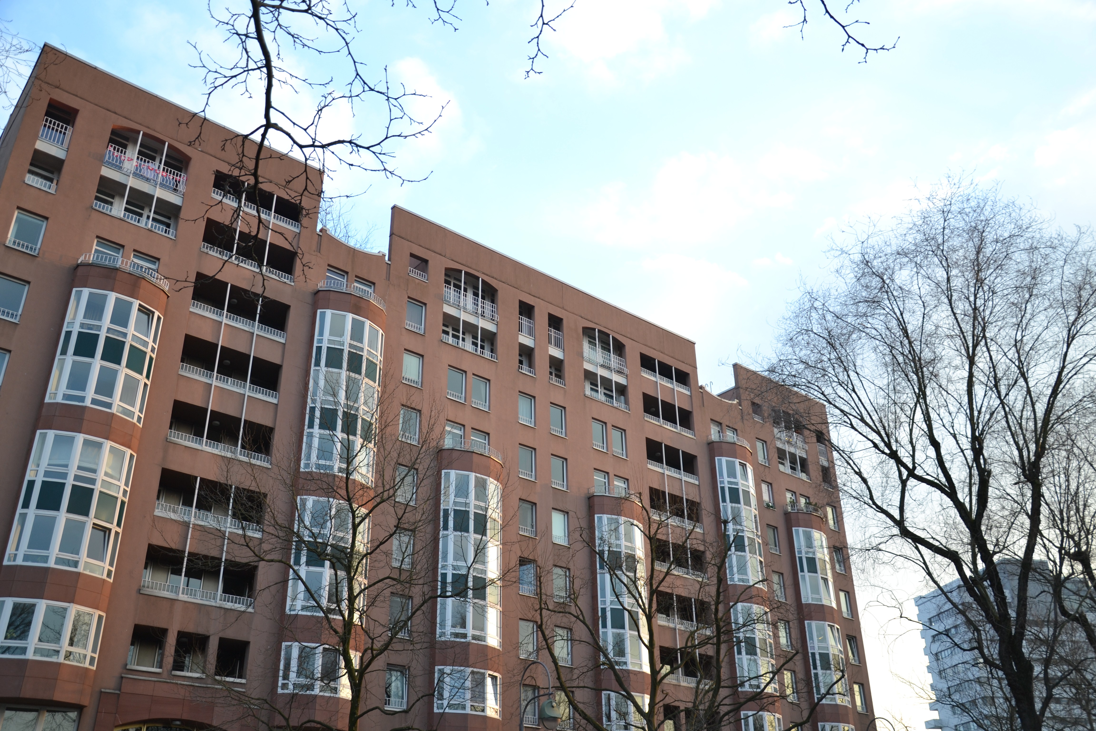 І хоча будинки тут великі, мене дуже потішило, що як і в маленьких німецьких містах і селах, вони неоднакові і цікаві. Ось лише один з прикладів, і далеко не найкращий. Зауважте, які тут різні балкони! Уявіть, наскільки там неоднакове планування! Але при цьому все витримано в одному стилі і немає відчуття жлобізму.