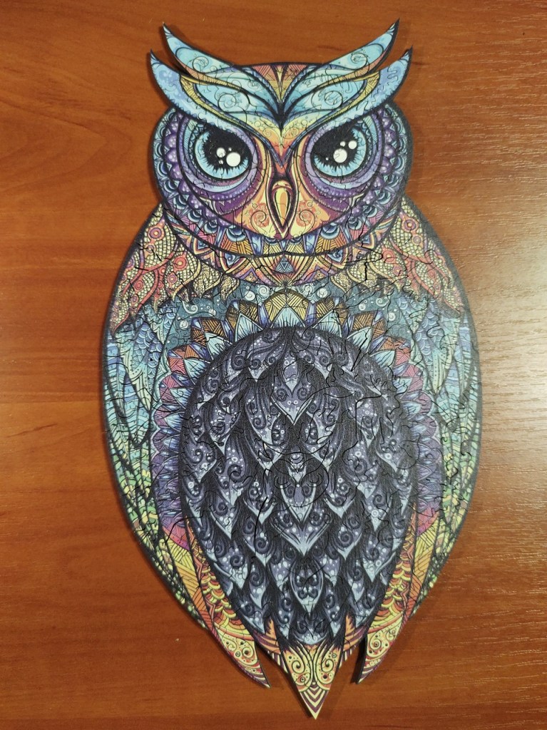 Склав чудовий пазл “Історія мудрої сови”. Це одна з тих дерев’яних головоломок, що нині широко рекламуються. В моєму випадку я вирішив придбати головоломку у GO Puzzle. Оскільки історично прізвище мого роду – Сова, мені нескладно було обрати малюнок.
